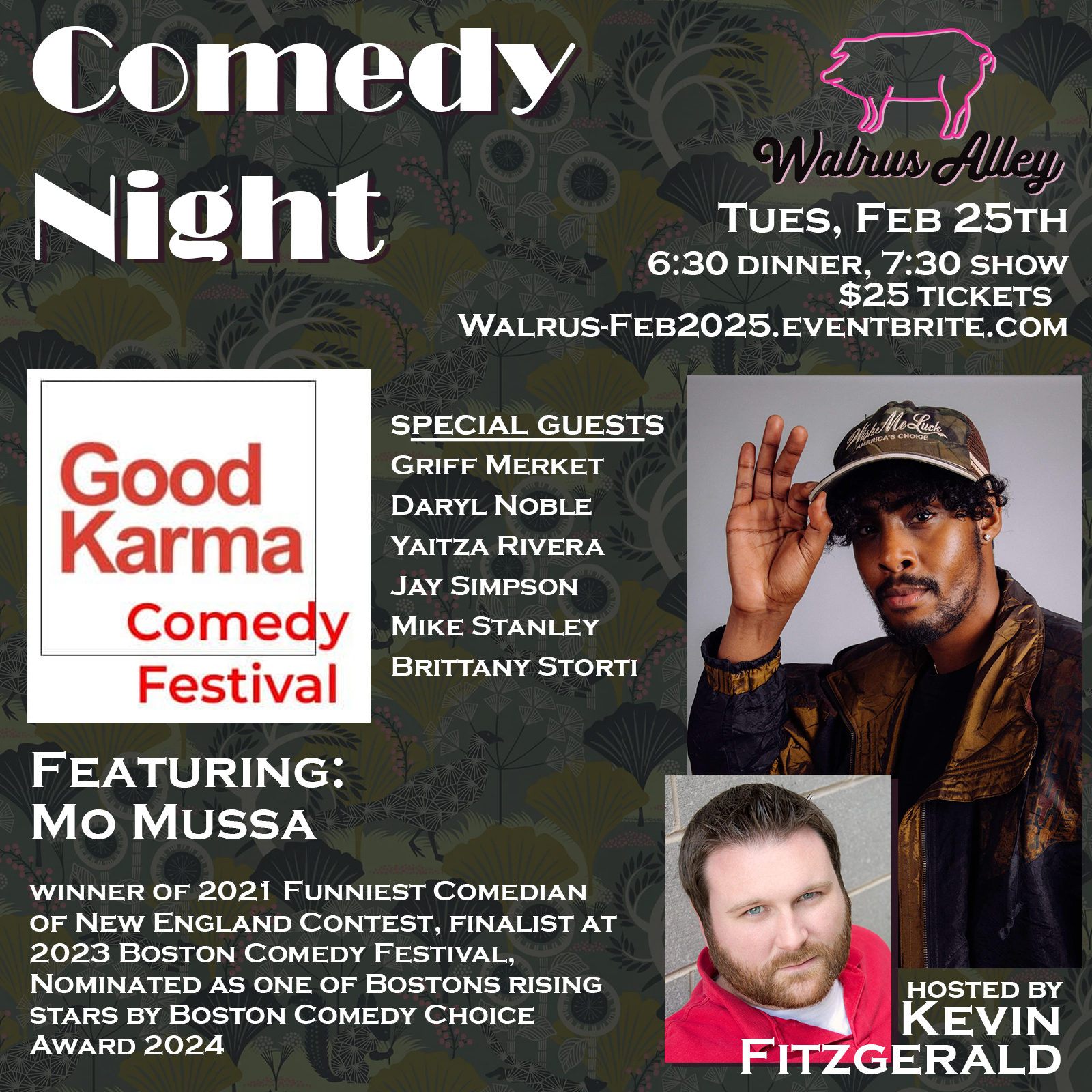 Featuring: Mo Mussa winner of 2021 Funniest Comedian of New England Contest, finalist at 2023 Boston Comedy Festival, Nominated as one of Bostons rising stars by Boston Comedy Choice Award 2024