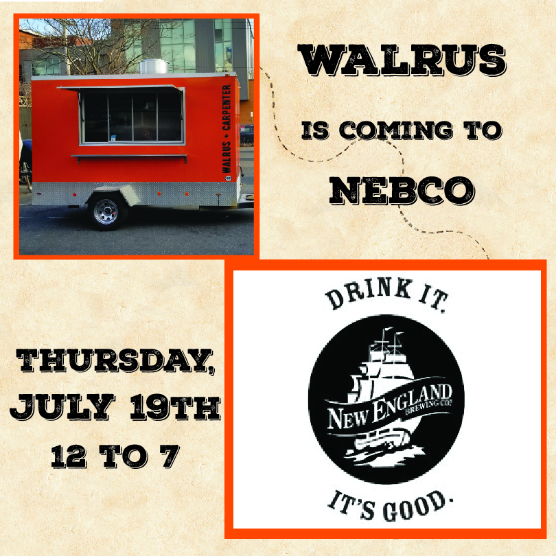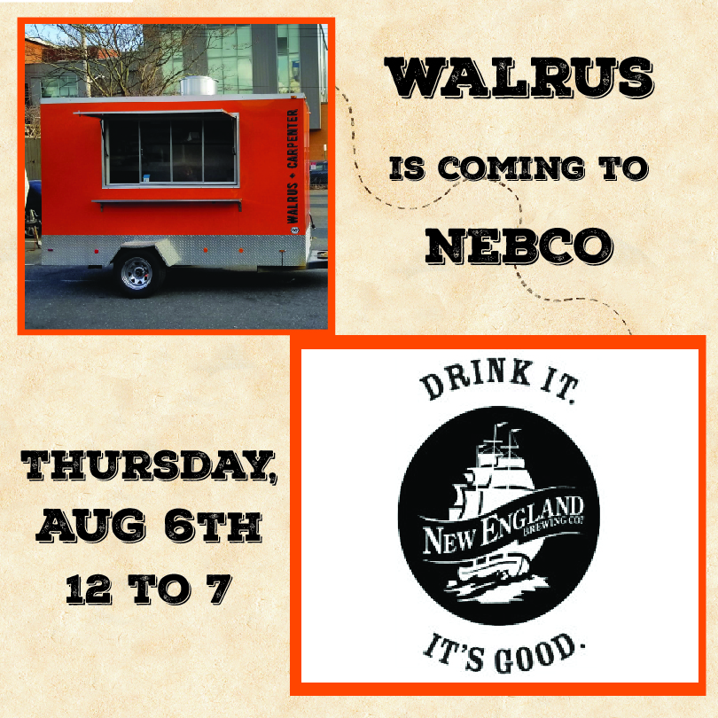 Walrus' food trailer will be at New England Brewing Company serving up some amazing eats in your area....