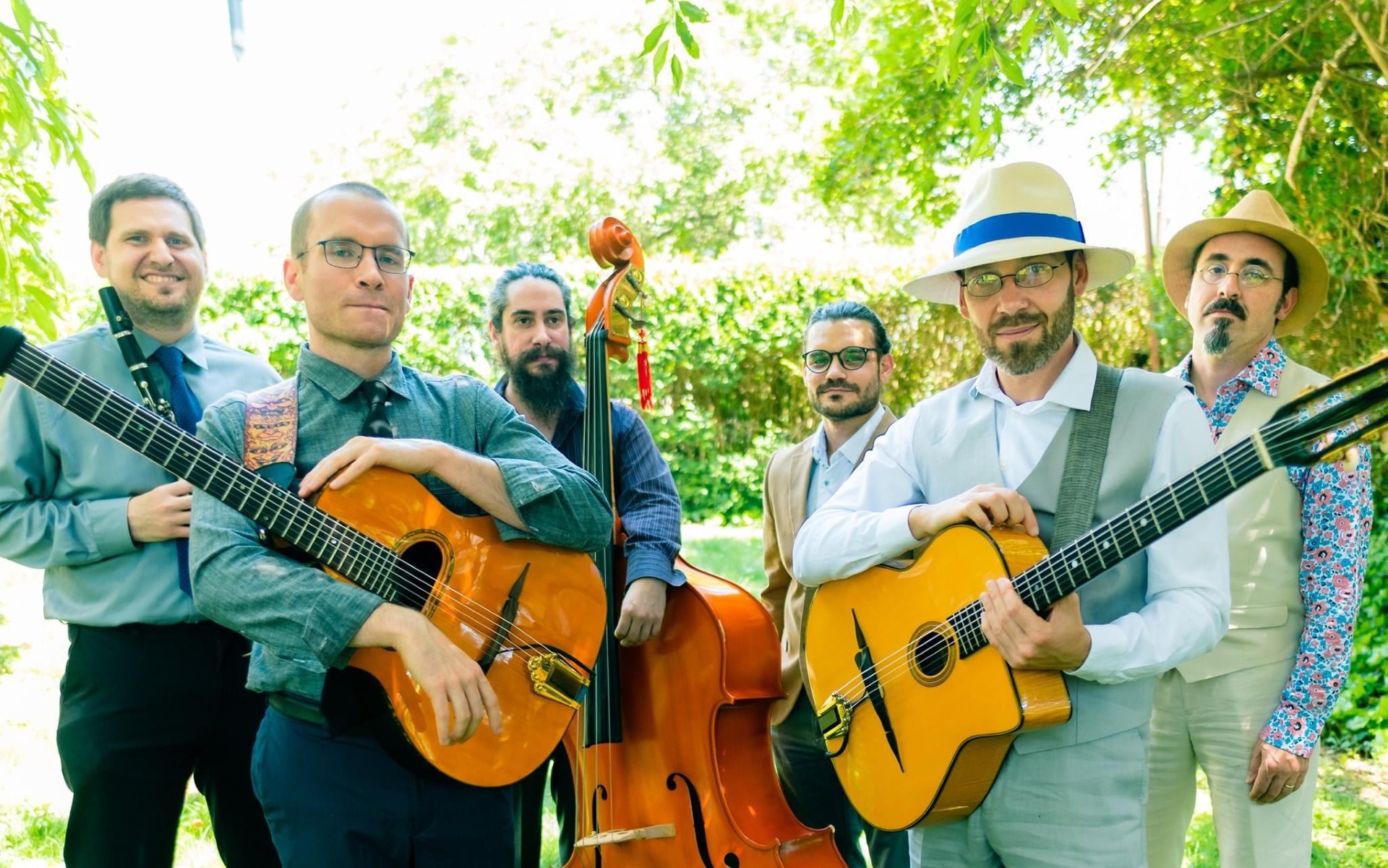 Paying homage to Django Reinhardt. The Hot Club of Black Rock plays hot swing, or jazz manouche, the kind of jazz that was popular in Paris in the 1920s and 1930s. Think the Moulin Rouge, or a cafe at four in the morning.